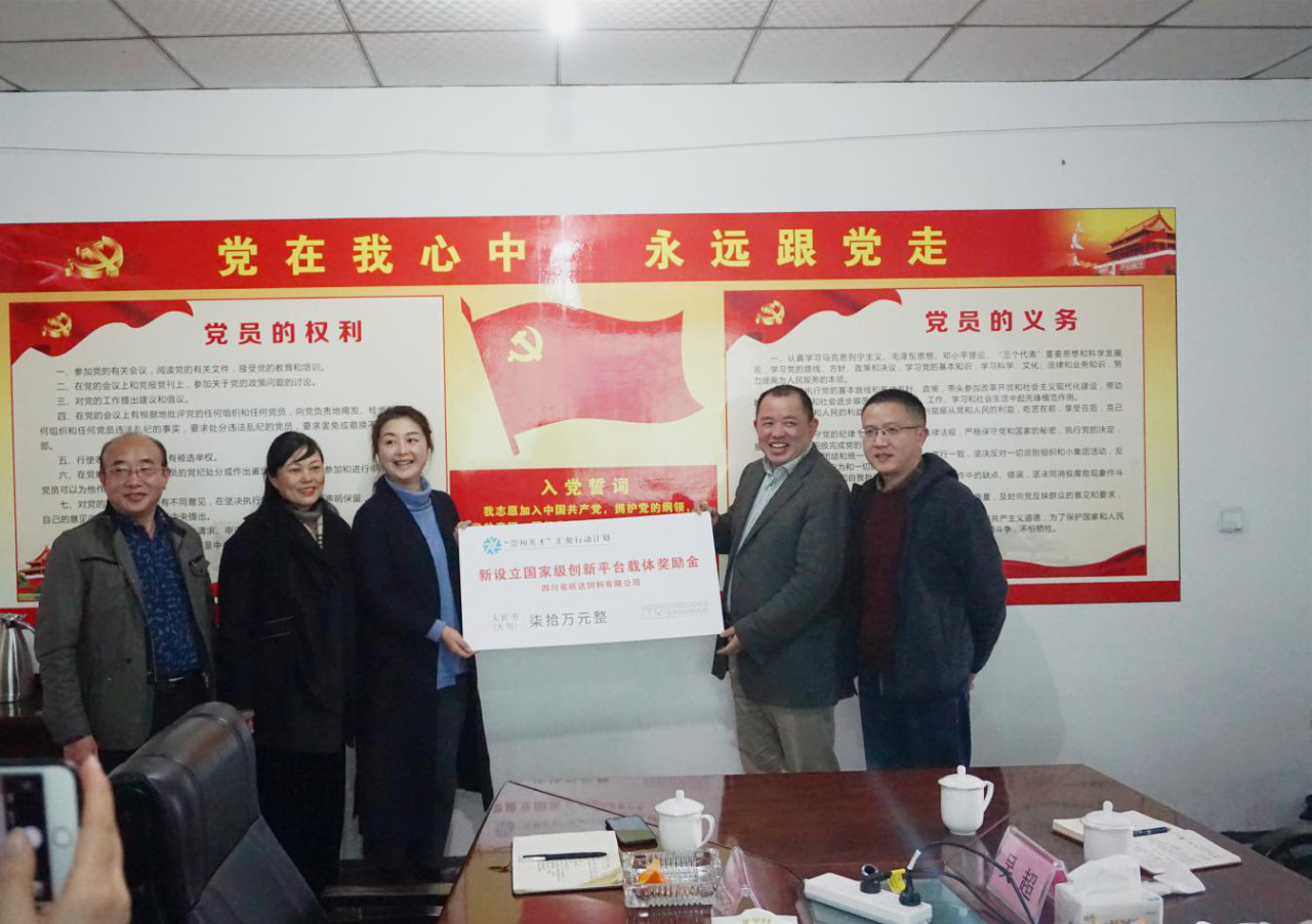 崇州市委組織部為旺達頒發國家級企業技術中心獎勵資金